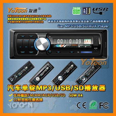 | Car Radio AM/FM/WMA/USB/MP3/SD Aux In Player Receiver CAR MP3/USB/SD CARD AM/FM PLAYER+AUX INPUT AM/FM-MPX Stereo Tuning AM Frequency Range: 520~1710kHz FM Frequency Range: 87.5~108MHz Built-In USB/SD Ports (Front) LCD Digital Display ID3 Tag Function Tone Control Rotary Tuning/Volume Control AUX-IN Jack (Front) Last-Track Memory 10 Songs Skip Up/ 10 Songs Skip Down Folder Up/Down Function Mute Function Packaging Details: Unit Type: piece Package Weight: 0.75kg(1.65lb.) Package Size: 22cmx22cmx8.5cm(8.66inx8.66inx3.35in) |