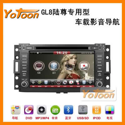 友通Yotoon别克GL8陆尊专车GPS导航仪,是中国汽车用品十大驰名品牌之一,获得欧盟CE认证,别克GL8陆尊专用DVD导航价格优惠,是车厂、4S、经销商和客户的最佳选择。别克GL8陆尊导航仪改装后与原车完美匹配,别克GL8陆尊车加装别克GL8陆尊专用导航仪后,导航仪内置蓝牙、收音机、DVD、倒车视频输入等功能。