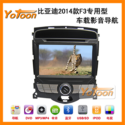 友通Yotoon2014款比亚迪F3专车GPS导航仪,是中国汽车用品十大驰名品牌之一,获得欧盟CE认证,2014款比亚迪F3专用DVD导航价格优惠,是车厂、4S、经销商和客户的最佳选择。2014款比亚迪F3导航仪改装后与原车完美匹配,2014款比亚迪F3车加装2014款比亚迪F3专用导航仪后,导航仪内置蓝牙、收音机、DVD、倒车视频输入等功能。