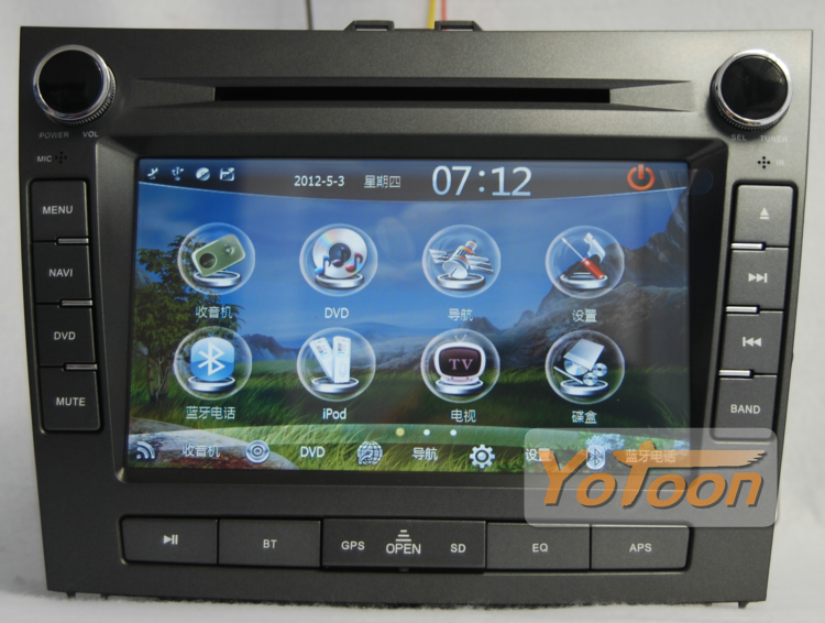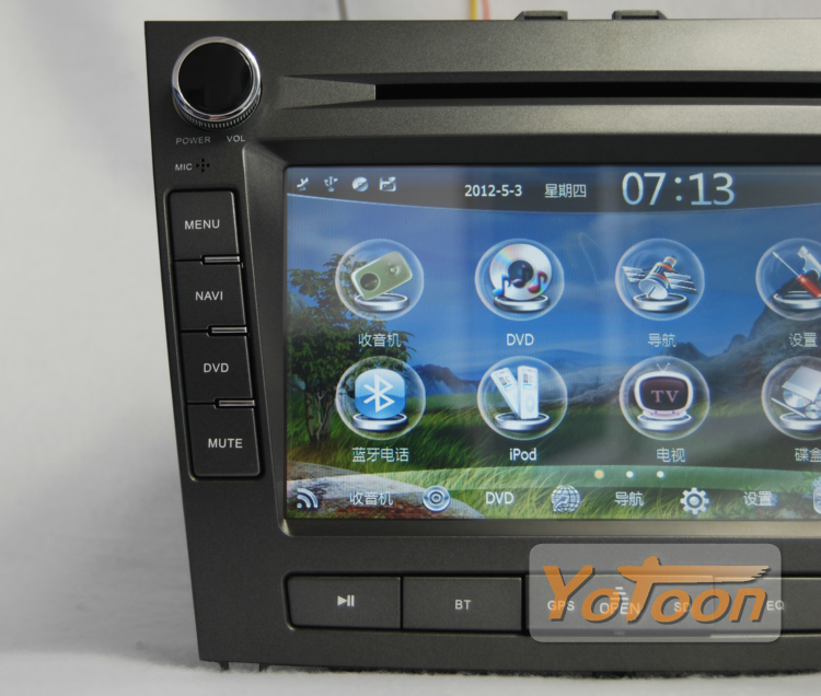 友通YOTOON系列影音导航产品全面支持USB/SD功能。全触摸控制功能,实现扫描播放、重复播放、随机播放;支持MP3/WMA/AVI/DAT/VOB多种音频及视频格式;支持JPG柯达相册、幻灯片自动播放。