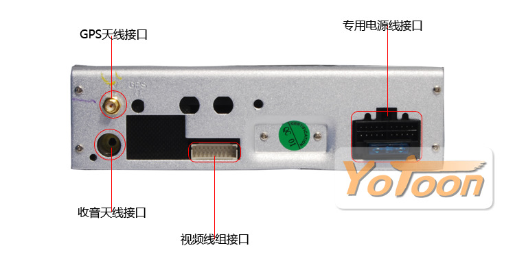 ·友通Yotoon车载影音导航系列产品内置2路视频输出,2路视频输入(一路为视频输入,一路为后视摄像头信号输入)接口。