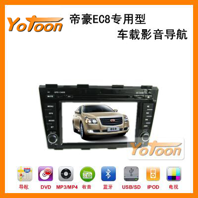 友通Yotoon帝豪EC8专车GPS导航仪,是中国汽车用品十大驰名品牌之一,获得欧盟CE认证,帝豪EC8专用DVD导航价格优惠,是车厂、4S、经销商和客户的最佳选择。帝豪EC8导航仪改装后与原车完美匹配,帝豪EC8车加装帝豪EC8专用导航仪后,导航仪内置蓝牙、收音机、DVD、倒车视频输入等功能。