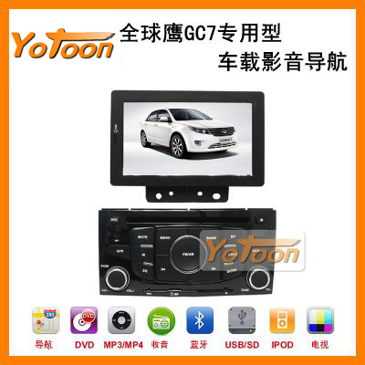友通Yotoon吉利全球鹰GC7专车GPS导航仪,是中国汽车用品十大驰名品牌之一,获得欧盟CE认证,吉利全球鹰GC7专用DVD导航价格优惠,是车厂、4S、经销商和客户的最佳选择。吉利全球鹰GC7导航仪改装后与原车完美匹配,吉利全球鹰GC7车加装吉利全球鹰GC7专用导航仪后,导航仪内置蓝牙、收音机、DVD、倒车视频输入等功能。