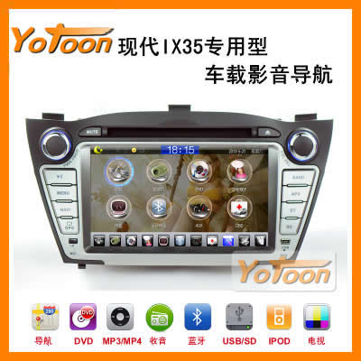 友通Yotoon现代IX35专车GPS导航仪,是中国汽车用品十大驰名品牌之一,获得欧盟CE认证,现代IX35专用DVD导航价格优惠,是车厂、4S、经销商和客户的最佳选择。现代IX35导航仪改装后与原车完美匹配,现代IX35车加装现代IX35专用导航仪后,导航仪内置蓝牙、收音机、DVD、倒车视频输入等功能。