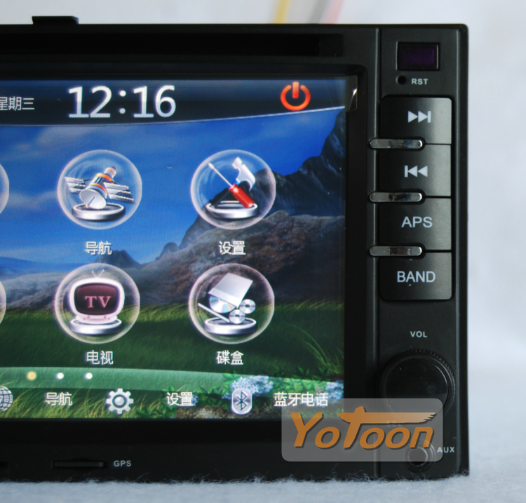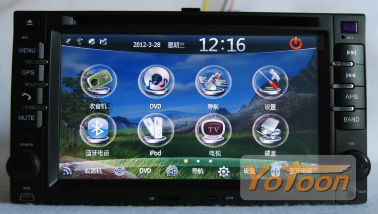 友通YOTOON系列影音导航产品全面支持USB/SD功能。全触摸控制功能,实现扫描播放、重复播放、随机播放;支持MP3/WMA/AVI/DAT/VOB多种音频及视频格式;支持JPG柯达相册、幻灯片自动播放。