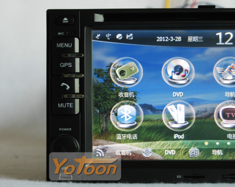 友通YOTOON系列影音导航产品全面支持USB/SD功能。全触摸控制功能,实现扫描播放、重复播放、随机播放;支持MP3/WMA/AVI/DAT/VOB多种音频及视频格式;支持JPG柯达相册、幻灯片自动播放。