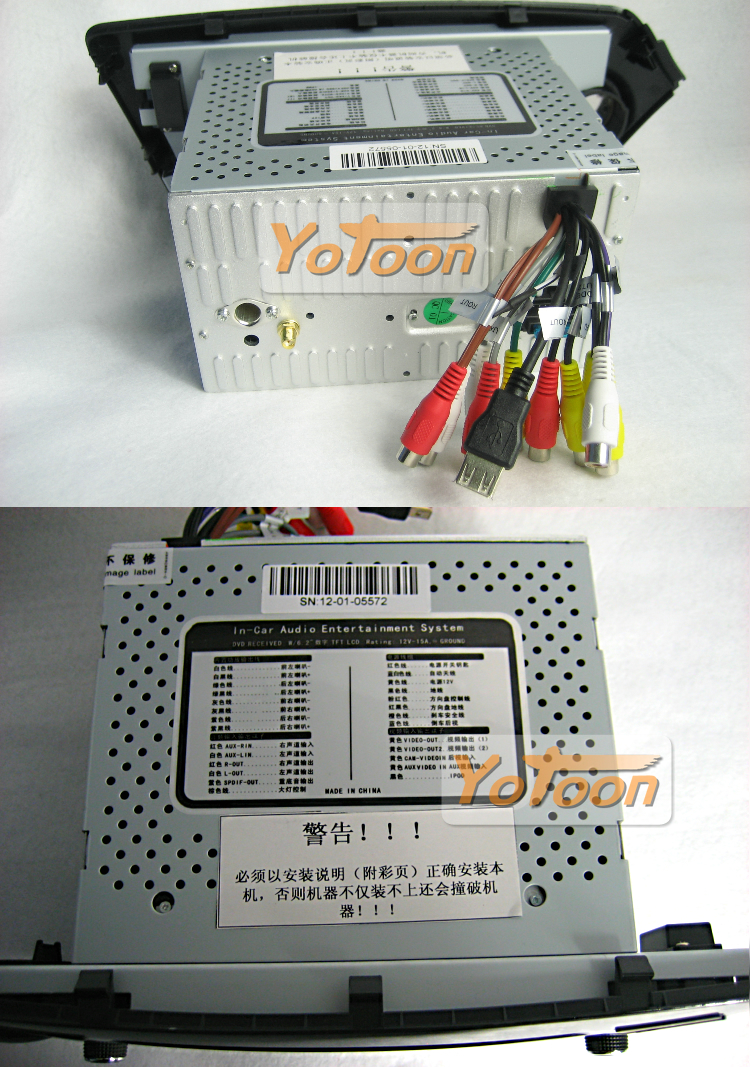 ·友通Yotoon车载影音导航系列产品内置2路视频输出,2路视频输入(一路为视频输入,一路为后视摄像头信号输入)接口。