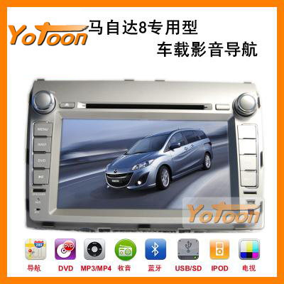 友通Yotoon马自达8专车GPS导航仪,是中国汽车用品十大驰名品牌之一,获得欧盟CE认证,马自达8专用DVD导航价格优惠,是车厂、4S、经销商和客户的最佳选择。马自达8导航仪改装后与原车完美匹配,马自达8车加装马自达8专用导航仪后,导航仪内置蓝牙、收音机、DVD、倒车视频输入等功能。