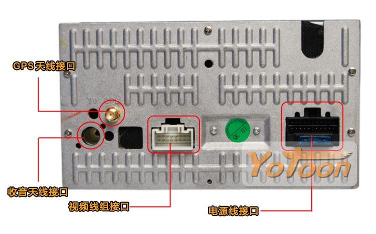 ·友通Yotoon车载影音导航系列产品内置2路视频输出,2路视频输入(一路为视频输入,一路为后视摄像头信号输入)接口。
