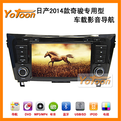 友通Yotoon日产2014款奇骏专车GPS导航仪,是中国汽车用品十大驰名品牌之一,获得欧盟CE认证,日产2014款奇骏专用DVD导航价格优惠,是车厂、4S、经销商和客户的最佳选择。日产2014款奇骏导航仪改装后与原车完美匹配,日产2014款奇骏车加装日产2014款奇骏专用导航仪后,导航仪内置蓝牙、收音机、DVD、倒车视频输入等功能。