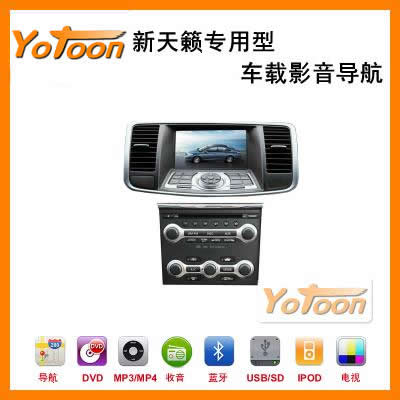 友通Yotoon日产新天籁专车GPS导航仪,是中国汽车用品十大驰名品牌之一,获得欧盟CE认证,日产新天籁专用DVD导航价格优惠,是车厂、4S、经销商和客户的最佳选择。日产新天籁导航仪改装后与原车完美匹配,日产新天籁车加装日产新天籁专用导航仪后,导航仪内置蓝牙、收音机、DVD、倒车视频输入等功能。