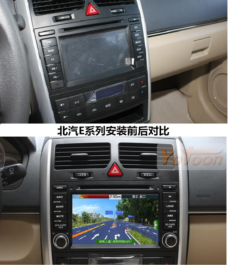 友通Yotoon北汽E系列专车GPS导航仪,是中国汽车用品十大驰名品牌之一,获得欧盟CE认证,北汽E系列专用DVD导航价格优惠,是车厂、4S、经销商和客户的最佳选择。北汽E系列导航仪改装后与原车完美匹配,北汽E系列车加装北汽E系列专用导航仪后,导航仪内置蓝牙、收音机、DVD、倒车视频输入等功能。