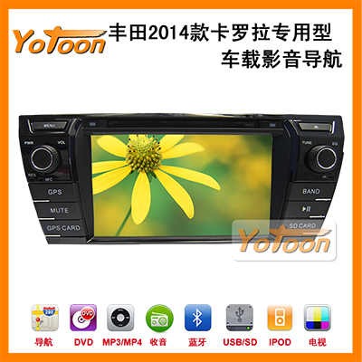 友通Yotoon丰田2014款卡罗拉专车GPS导航仪,是中国汽车用品十大驰名品牌之一,获得欧盟CE认证,丰田2014款卡罗拉专用DVD导航价格优惠,是车厂、4S、经销商和客户的最佳选择。丰田2014款卡罗拉导航仪改装后与原车完美匹配,丰田2014款卡罗拉车加装丰田2014款卡罗拉专用导航仪后,导航仪内置蓝牙、收音机、DVD、倒车视频输入等功能。