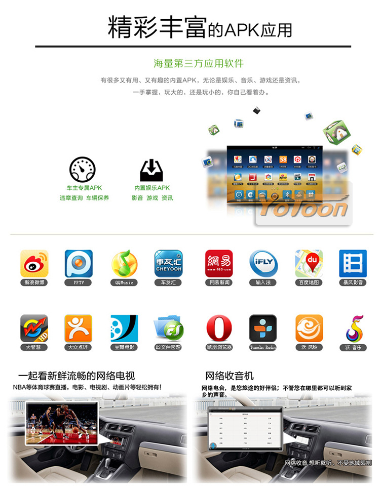 友通Yotoon丰田新威驰安卓10.2寸专车GPS导航仪,是中国汽车用品十大驰名品牌之一,获得欧盟CE认证,丰田新威驰安卓10.2寸专用DVD导航价格优惠,是车厂、4S、经销商和客户的最佳选择。丰田新威驰安卓10.2寸导航仪改装后与原车完美匹配,丰田新威驰安卓10.2寸车加装丰田新威驰安卓10.2寸专用导航仪后,导航仪内置蓝牙、收音机、DVD、倒车视频输入等功能。