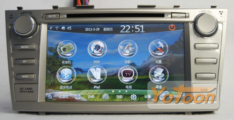 友通Yotoon丰田凯美瑞专车GPS导航仪,是中国汽车用品十大驰名品牌之一,获得欧盟CE认证,丰田凯美瑞专用DVD导航价格优惠,是车厂、4S、经销商和客户的最佳选择。丰田凯美瑞导航仪改装后与原车完美匹配,丰田凯美瑞车加装丰田凯美瑞专用导航仪后,导航仪内置蓝牙、收音机、DVD、倒车视频输入等功能。