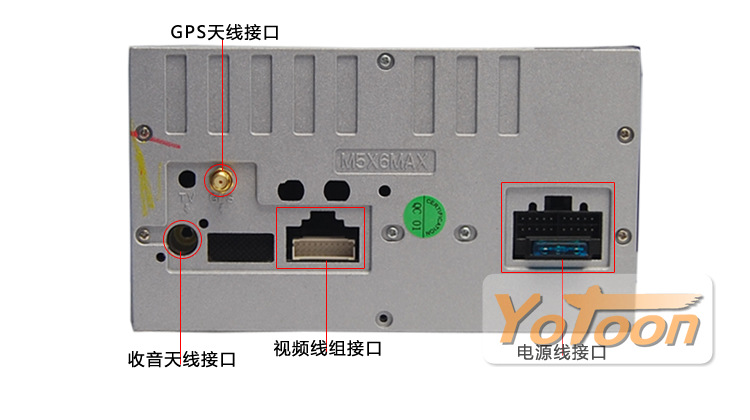 ·友通Yotoon车载影音导航系列产品内置2路视频输出,2路视频输入(一路为视频输入,一路为后视摄像头信号输入)接口。