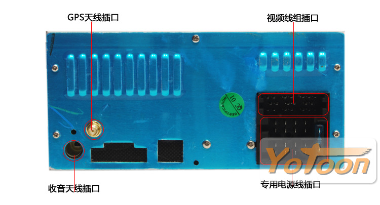 ·友通Yotoon车载影音导航系列产品内置2路视频输出,2路视频输入(一路为视频输入,一路为后视摄像头信号输入)接口。
