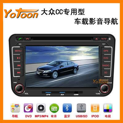 友通Yotoon大众CC专车GPS导航仪,是中国汽车用品十大驰名品牌之一,获得欧盟CE认证,大众CC专用DVD导航价格优惠,是车厂、4S、经销商和客户的最佳选择。大众CC导航仪改装后与原车完美匹配,大众CC车加装大众CC专用导航仪后,导航仪内置蓝牙、收音机、DVD、倒车视频输入等功能。
