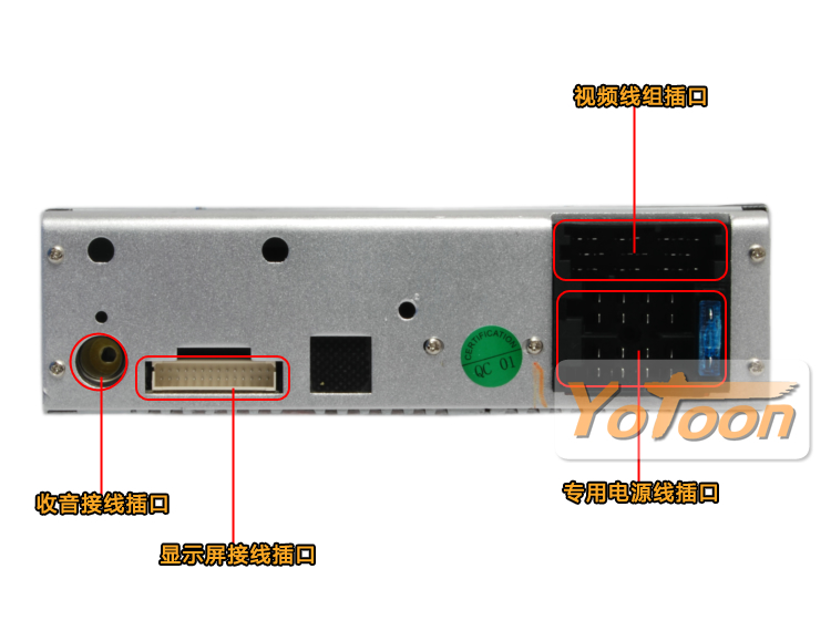 ·友通Yotoon车载影音导航系列产品内置2路视频输出,2路视频输入(一路为视频输入,一路为后视摄像头信号输入)接口。